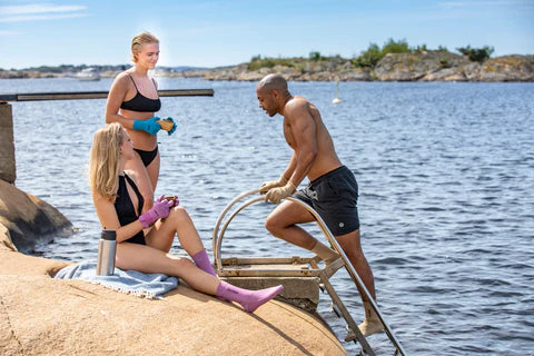 Iceme leverer varene! Skifteponchoen er som en varm klem etter isbading, og neoprensokkene gjør at jeg klarer å holde på mye lengre uten at tærne skriker! Perfekt kombo for kalde dypp
