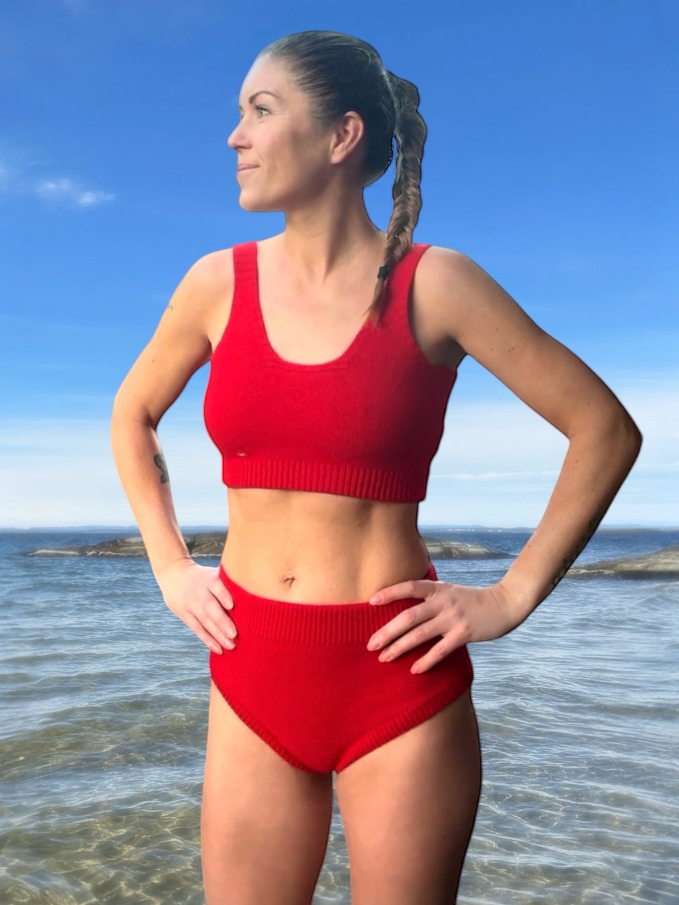 Iceme ull-bikini er designet for komfort og varme under kjølige forhold, og gir deg en følelse av luksus mens du bader. Vårt moderne perspektiv kombinert med ullens naturlige egenskaper gjør dette til en bikini som skiller seg ut.